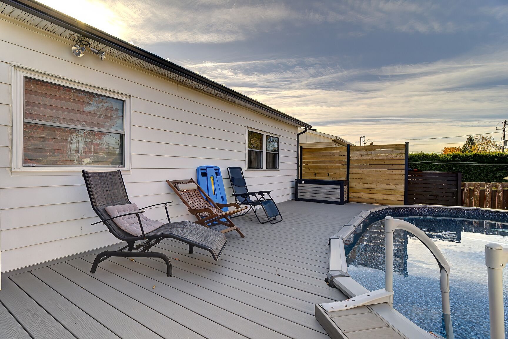 Bienvenue dans cette maison complètement rénovée, prête à écrire un nouveau chapitre. Elle marie charme, confort et durabilité 5 chambres spacieuses pour la famille, le bureau à domicile ou les invités. 2 salles de bain Cuisine neuve au design soigné, avec des finitions de qualité Toit en bardeaux d'acier offrant une longévité exceptionnelle et un entretien minimal. Revêtement extérieur avant en pierre refait à neuf, donnant à la façade une allure élégante et intemporelle. Piscine chauffée et grand deck récent un espace parfait pour les après-midi d'été, les BBQ et les moments de détente en famille. Thermopompe centrale, près de tout